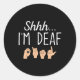 Shhh i'm Deaf ASL Sign language Hearing loss aware Classic Round Sticker