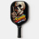 This unique and quirky Pickleball paddle features a skeleton with a twist - the skeleton is actually holding up a bony hand with the words "shh no one cares" in a humourous and eerie manner. The juxtaposition of the skeleton's aged bones and the modern phrase creates a surreal and thought-provoking image that is sure to turn heads.