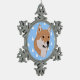 Shiba Inu Christmas Ornament: Hang this Shiba Inu dog Christmas ornament in your home or give as a gift to a dog lover. The tan | brown and white Shiba Inu dog head study is against a background of blue with a pattern of small white silhouette Christmas trees.