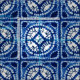 Custom fabric indigo design using Shibori Tie Dye technique by Virginia Vivier, Vagabond Folk Art.
