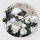 Black and white Shih Tzu face looking cute and sweet as the white roses she is with dog lovers wall clock