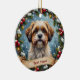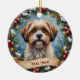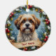 A beautiful, ultra-detailed Christmas design featuring a realistic portrait of the breed centered within a soft, festive winter frame. This elegant design includes pine branches, red berries, and snowflakes against a snowy backdrop, illuminated by warm holiday lighting. The balanced, round composition includes clear space below the dog for customization.