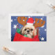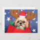 Shih Tzu dog wearing a Santa hat and antlers
