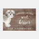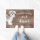 Funny beware of the wet kisser" Shih tzu Dog door mat set on a rustic faux background. Visit our shop to view a large assortment of dog breads