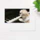 Shih Tzu contemplates old piano keys as if ready to practice for her lesson photo business card.