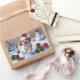 A playful Shih Tzu runs happily through the snowy winter scene, wearing a festive red Christmas hat. This charming design highlights the breed’s flowing coat, sweet expression, and affectionate nature while capturing the warmth and joy of the holiday season. A delightful winter moment full of festive cheer.