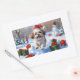 Shih Tzu Running in Snow with Christmas Hat Sticker