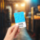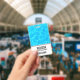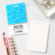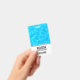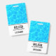 Name badge with a photograph of clear blue pool water, with shimmering reflections.