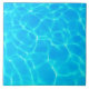 Ceramic tile with a photograph of clear blue pool water, with shimmering reflections.