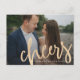 This seasonal photo card design features a full bleed image with a brushed faux gold glitter lettered font overlay.