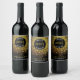 This New Years wine bottle label features a circular pattern of shimmering gold-tone lights against rich black, creating a circular frame for the year indication. Makes any regular bottle wine the perfect gift for the New Year or as a promotional item for any business, or customize for your own special New Years event. Available with matching products.
