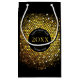 This New Year's Eve gift bag features a circular pattern of shimmering gold-tone lights against rich black, creating a circular frame for the year indication. The image repeats on both sides of the bag so you can change the message on either side independent of the other one. It is versatile enough as a favour or gift bag for an office holiday party, birthday party, New Year's Eve wedding, or holiday cocktail party. Available with matching products.