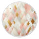 Geometric elegance with this radiant pattern of gold, pink, and white triangles. Each triangle gleams with a lustrous sheen, creating a captivating and reflective display. Perfect for adding a touch of glamour.