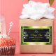 Matching a shimmery green and yellow frame and cute hearts graphic on a black background.