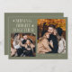 Minimal and modern holiday photo template card featuring 2 photos with a text that says "shining bright together" with stars. You can also add another picture and message on the back. The background is sage green.