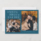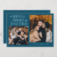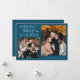 Minimal and modern holiday photo template card featuring 2 photos with a text that says "shining bright together" with stars. You can also add another picture and message on the back. The background is teal.