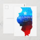 Shining Red Blue Glitter Map of State of Illinois Postcard