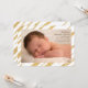 Share the news of your special arrival with this chic, gold-stripe birth announcement. The wording can be dragged to any location to fit into your photo.