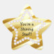 Award or encouragement sticker in the shape of a stare. Gold banded background with a diamond border.