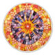 A cheerful mixed media mosaic made by me! Includes yellow, orange and purple smalti, glass beads, vintage cabochons and a found object.