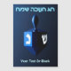 A modernistic, metallic, blue dreidel against a dark, night-like background. Two of the Hebrew letters found on a dreidel, nun and shin, glow brightly. Hebrew text reading "Chag Chanukkah Sameach" (Happy Hanukkah) also appears in glowing blue and white. Add your own additional text.