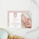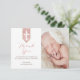 FLAT thank you card with photo; perfect for religious events such as baptisms, christenings, communions and confirmations. Featuring a decorative cross on a blush pink banner with an accent of gold on the border. Please note that this is not real metallic foil. The artwork is simulated to give it an appearance of texture. Include your photo and pre-printed message for an extra special thank you card.
