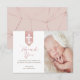 Shiny Blush Rose Script Baptism Thank You Photo Card