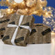 A luxury and elegant wrapping paper with space for custom text in classic art deco gold frame. The design is gold sequins pattern on black with some highlight sparkles. (product has no real sparkle or glitter). Add a name and create a elegant way to give personalized gifts with this wrapping.