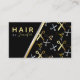 Stylish personalized business cards for hairstylists with faux gold and silver scissors on a black background. The text is fully customizable.