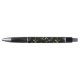 Stylish modern pen design for hairstylists with faux gold and silver scissors pattern on a black background. The background is fully customizable.