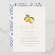 Add some shine to your bridal shower invitations with real gold, silver, or rose gold foil! This classic and timeless metallic style is sure to add another level to your invites. Celebrate the bride-to-be in style with this elegant and modern lemon-themed bridal shower invitation. Featuring a beautiful hand-painted watercolor illustration of two lemons and lemon blossoms hanging from a tree branch, this chic watercolor invitation is perfect for a variety of bridal shower themes. The classic, elegant typography, paired with modern handwritten calligraphy and real foil, creates a sophisticated and contemporary look that will impress guests. The back of the invitation features painted blue Italian tiles, adding a touch of Mediterranean charm to this design. Perfect for any spring or summer bridal shower event, whether a backyard brunch, a vineyard tour, or a beachside celebration, this invitation will bring a touch of sunshine to any occasion. Whether you're planning a rustic, farmhouse, Italian-inspired, or citrus-themed bridal shower, this invitation is sure to set the tone for a memorable event. Personalize the invitation with your event details, or use Zazzle's easy-to-use Design Tool to change fonts, colours, and placement. You can easily choose from gold, silver, and rose gold foil from the tool above. A "She found her main squeeze" version of this design is available in our store. Browse our store for more lemon bridal shower invitations. Feel free to message me with any questions - I'll be happy to help!