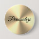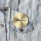 Shiny metallic gold large pinback button. Personalized pins for Birthday, Christmas, corporate office party, New Years Eve, wedding, event, celebration etc. Make your own name badge for friends, family, guests, employees, clients, coworkers, customers, bridesmaids, maid of honour, matron of honour, flower girls, mother of the bride etc. Available in small and extra large sizes. Elegant script typography template with golden shine.