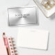Shiny metallic silver, stainless steel texture print with customizable black typography and simple frame.