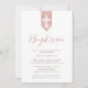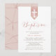 Stylish and modern baptism invitation featuring a textured-effect blush rose banner and "Baptism" written in a bold calligraphy script.