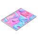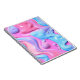 Colourful shiny pink, blue, purple and yellow plastic swirled abstract design with bubbles