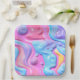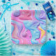 Colourful shiny pink, blue, purple and yellow plastic swirled abstract design with bubbles