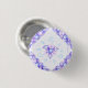 A pretty button design with a soft-shaded purple flower with blue leaves and twirly vines.