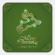 Shiny Reindeer on Ornamental Green Background Square Sticker
