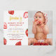 Add some shine to your birthday party invitations with real gold, silver, or rose gold foil! This classic and timeless metallic style is sure to add another level to your invites. Come and join us to have some fun, our sweet little berry is turning one! Berry first birthday one-year-old party theme. The front of this card is divided into two sections, to the left, there is the invitation design, and to the right, there is a photo of the birthday girl. We have chosen a template photo of a toddler eating a big plate of strawberries to match the theme of the card. The invitation design features six watercolor strawberries around the edge, the birthday girl's name in big handwriting-style real foil lettering, and "berry first birthday" in vintage-style serif capitals. There is a little gold foil heart between the two sections of text. The back of the invitations is a hand-painted chequered pattern. The retro type and red plaid are inspired by strawberry jam jars! Perfect for spring & summer celebrations, and outdoor & garden themes. Berry sweet first birthday invitations. Click "Personalize this template" to edit the text and upload your own photo. If you want to edit fonts, placement, foil, or colours, simply scroll to "Click to customize further" and use the Zazzle design tool. You can easily choose from gold, silver, and rose gold foil from the tool above. Please note the cards are printed as you see them on your screen when ordering, so be sure to double-check for typos! Browse my store for more girls' 1st birthday party invitations.