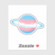 Digital art of a shiny planet in the colours of the transgender flag surrounded by rings like Saturn in outer space.
