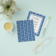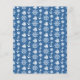 Elegant decorative blue and white nautical / coastal pattern with a ship's wheel, compass, anchor and sailing ship.