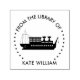 Custom Ex Libris Stamp features a vintage ship silhouette and classic sans-serif fonts. Personalize this beautiful raven from the library of custom rubber stamps with your name.