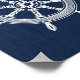 Nautical ship wheel against a dark blue burlap background. Perfect addition to any nautical themed room.