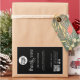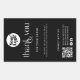 Customize these black minimalist "Shipping Logo QR Code Thanks Black Box Seal Labels" for business packaging, featuring a white company logo, the message "Thank you for your order" in a modern ligature typography, your custom message, QR Code, and social media handles (Instagram, Facebook). Stickers are intended to go vertically over the lid of the packaging box. Please get in touch with the store designer for further customization if needed.