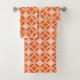 Serviette sertie dans un Shippo japonais traditionnel, ou "sept trésors" à motifs de cercles enchevêtrés avec un motif de fleur central - fleurs en crème et mandarine orange avec un arrière - plan profond à motif mandarin et orange pastel