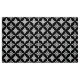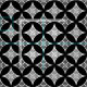 Traditional Japanese Shippo, or "seven treasures" patterned fabric of interlocking circles with a central flower motif - flowers in shades of grey / grey with a black and white patterned background