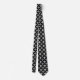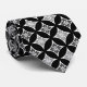 Tie in a traditional Japanese Shippo, or "seven treasures" pattern of interlocking circles with a central flower motif - flowers in shades of grey / grey with a black and white patterned background