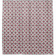 Traditional Japanese Shippo, or "seven treasures" patterned shower curtain of interlocking circles with a central flower motif - coral pink flowers with a black and white patterned background