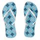 Traditional Japanese Shippo, or "seven treasures" patterned flip flops of interlocking circles with a central flower motif - blue and white flowers with an indigo and sky blue patterned background