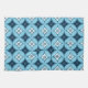 Traditional Japanese Shippo, or "seven treasures" patterned tea towel of interlocking circles with a central flower motif - blue and white flowers with an indigo and sky blue patterned background